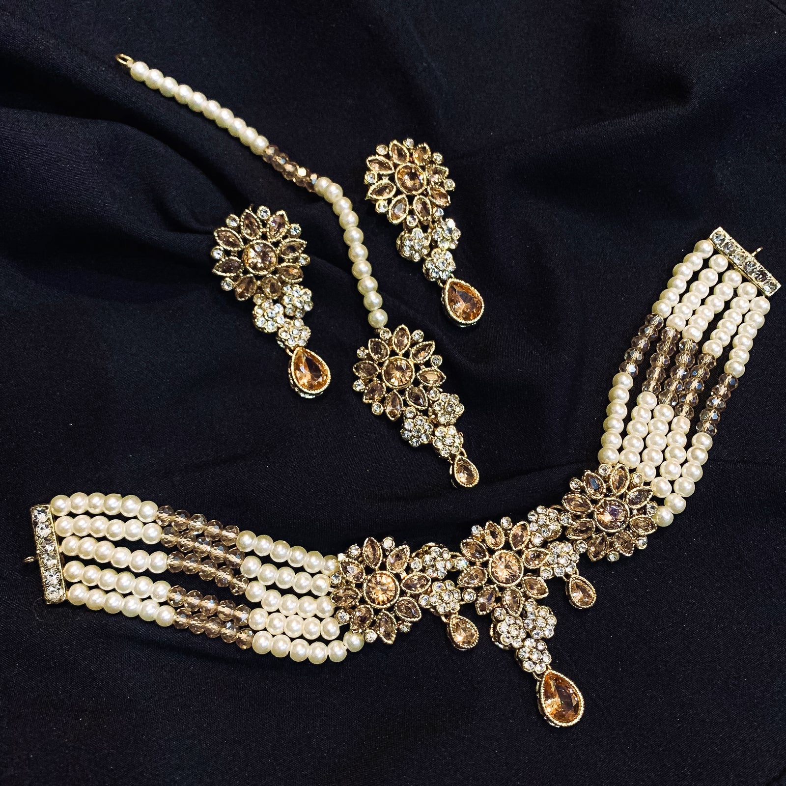 Multi-Strand Design: The choker features multiple strands of pearls, creating a luxurious and voluminous look.