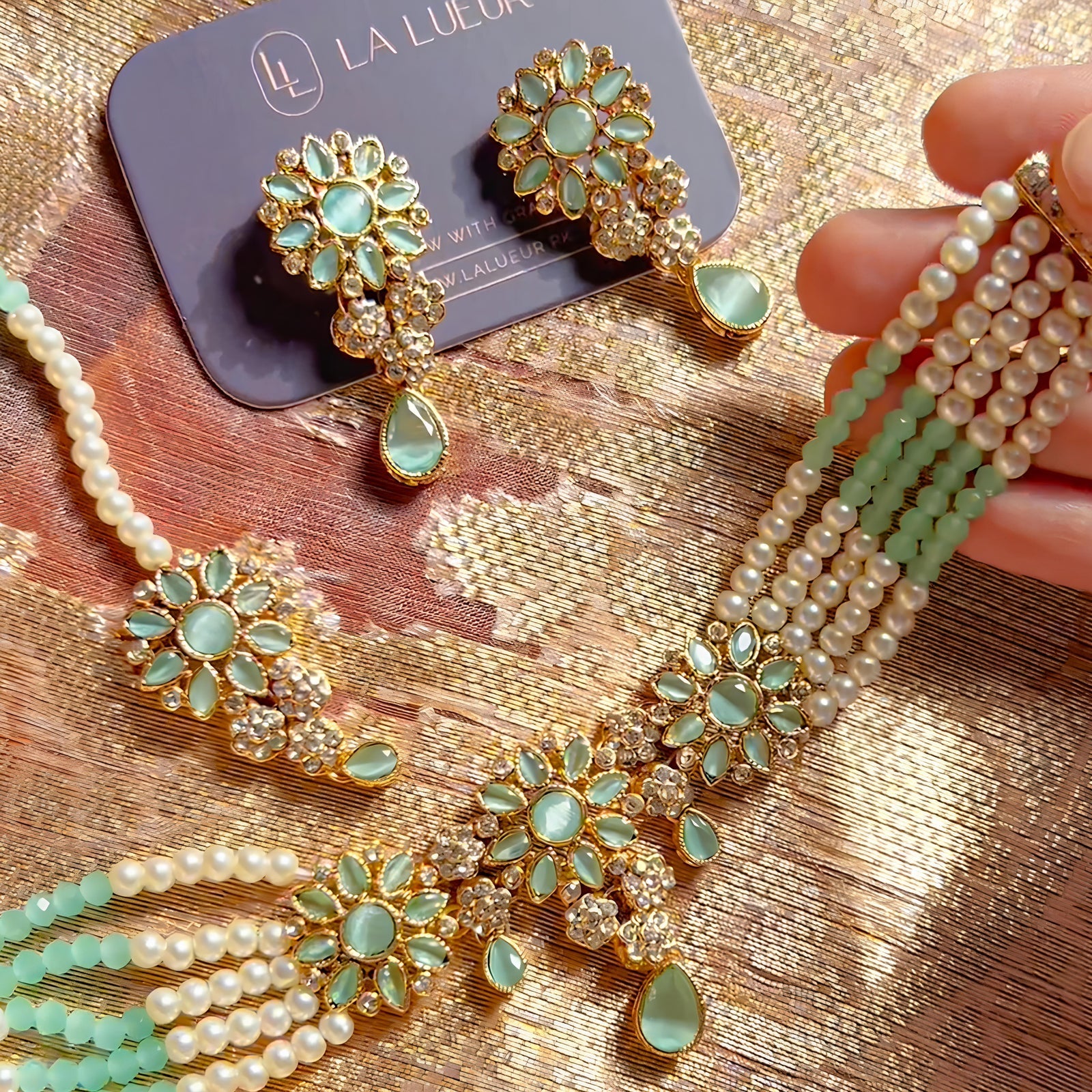 Delicate Pearls: The high-quality pearls used in this set are lustrous and smooth to the touch, providing a classic and timeless appeal.