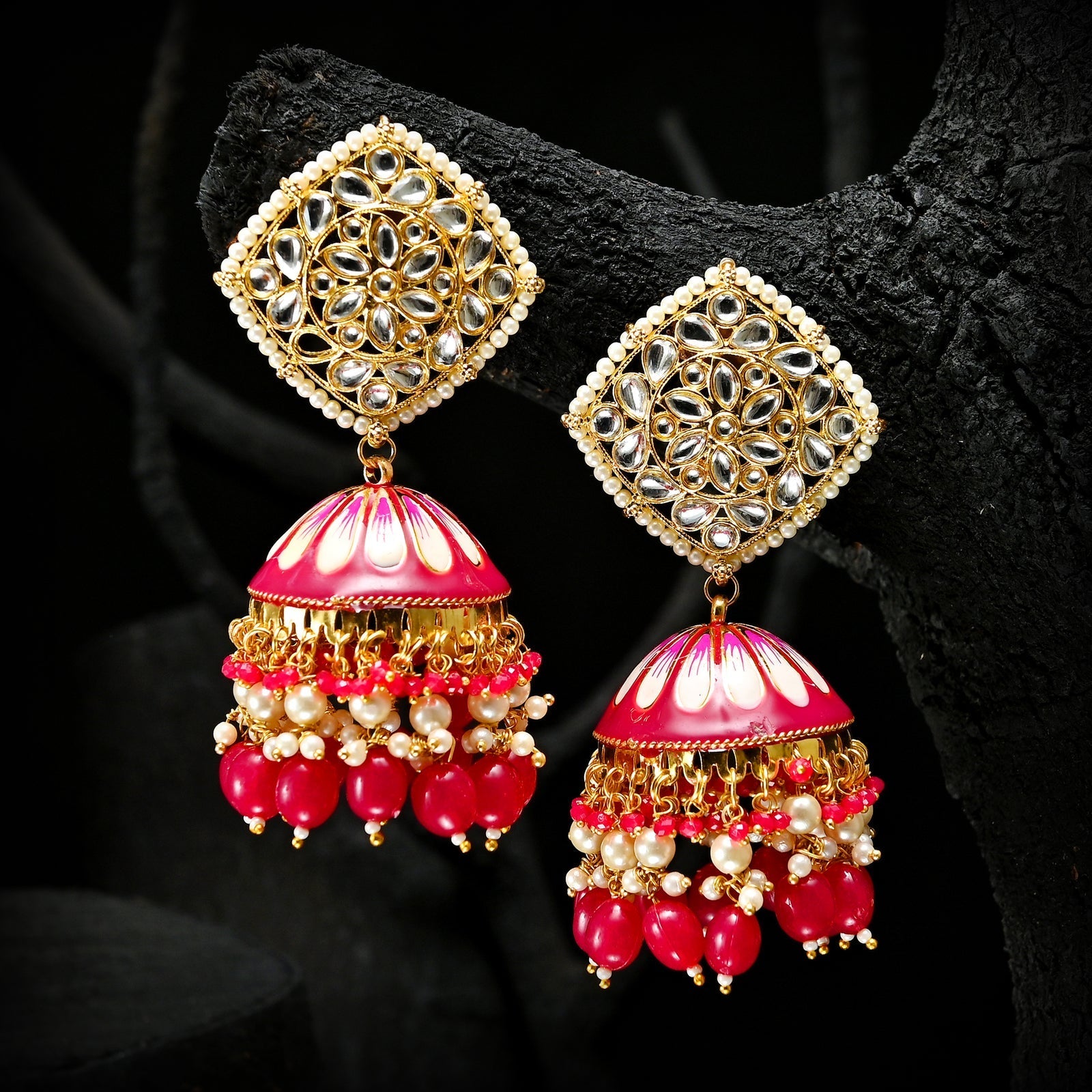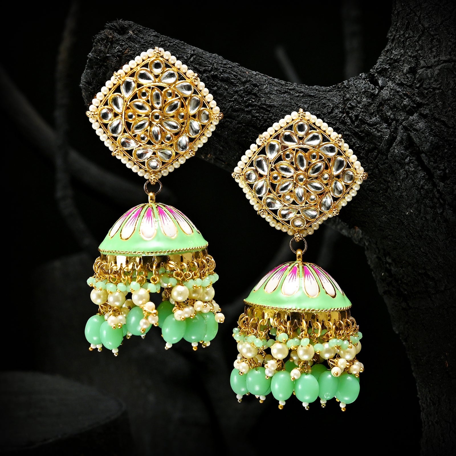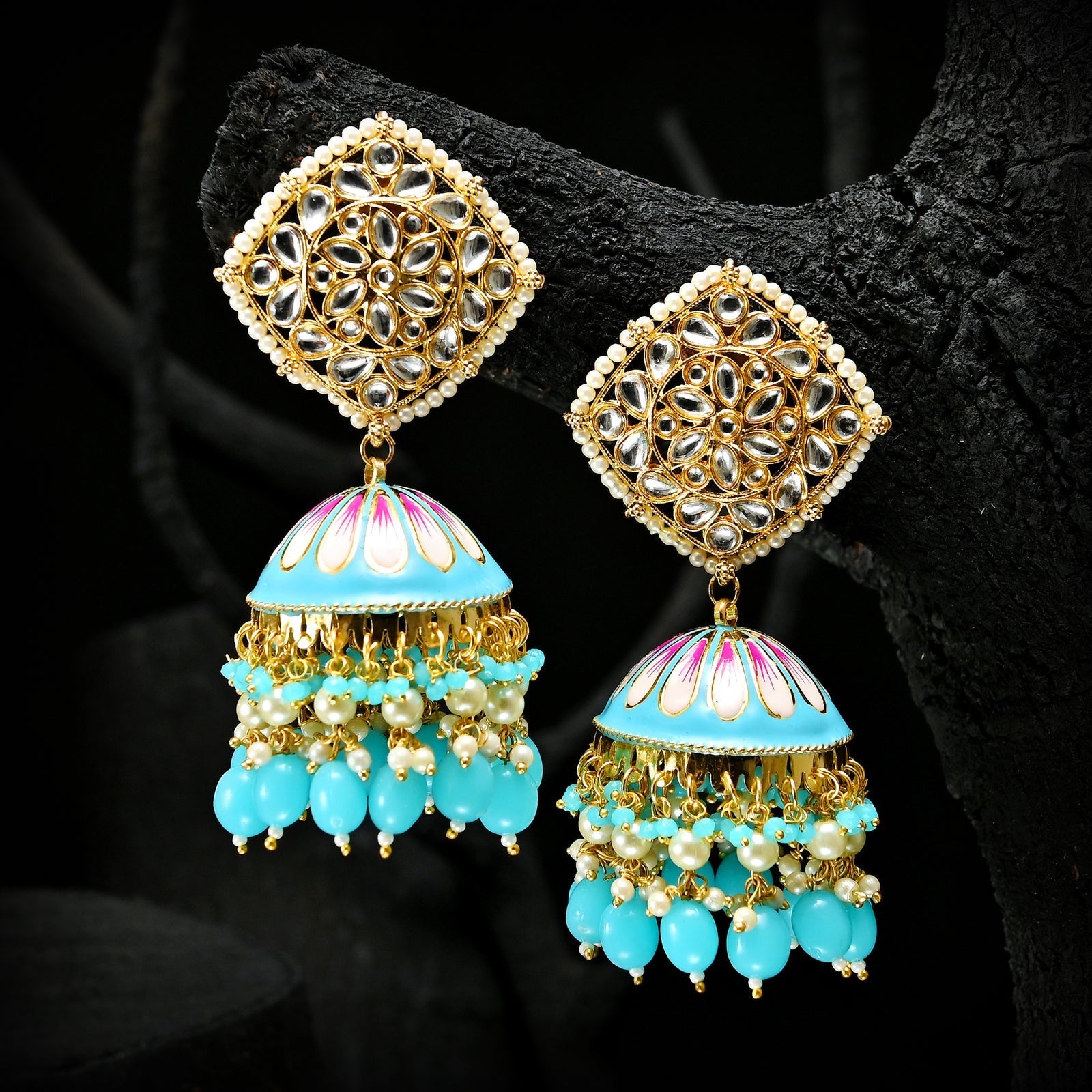 Golden Twilight Jhumkas are traditional earrings with a design inspired by the warm hues of twilight. Crafted from high-quality materials like gold-plated metal or sterling silver, they feature intricate detailing, offering versatility for both traditional and modern wear. Available in different sizes, these jhumkas prioritize comfort for extended wear during various occasions. Check with the specific brand or retailer for precise details