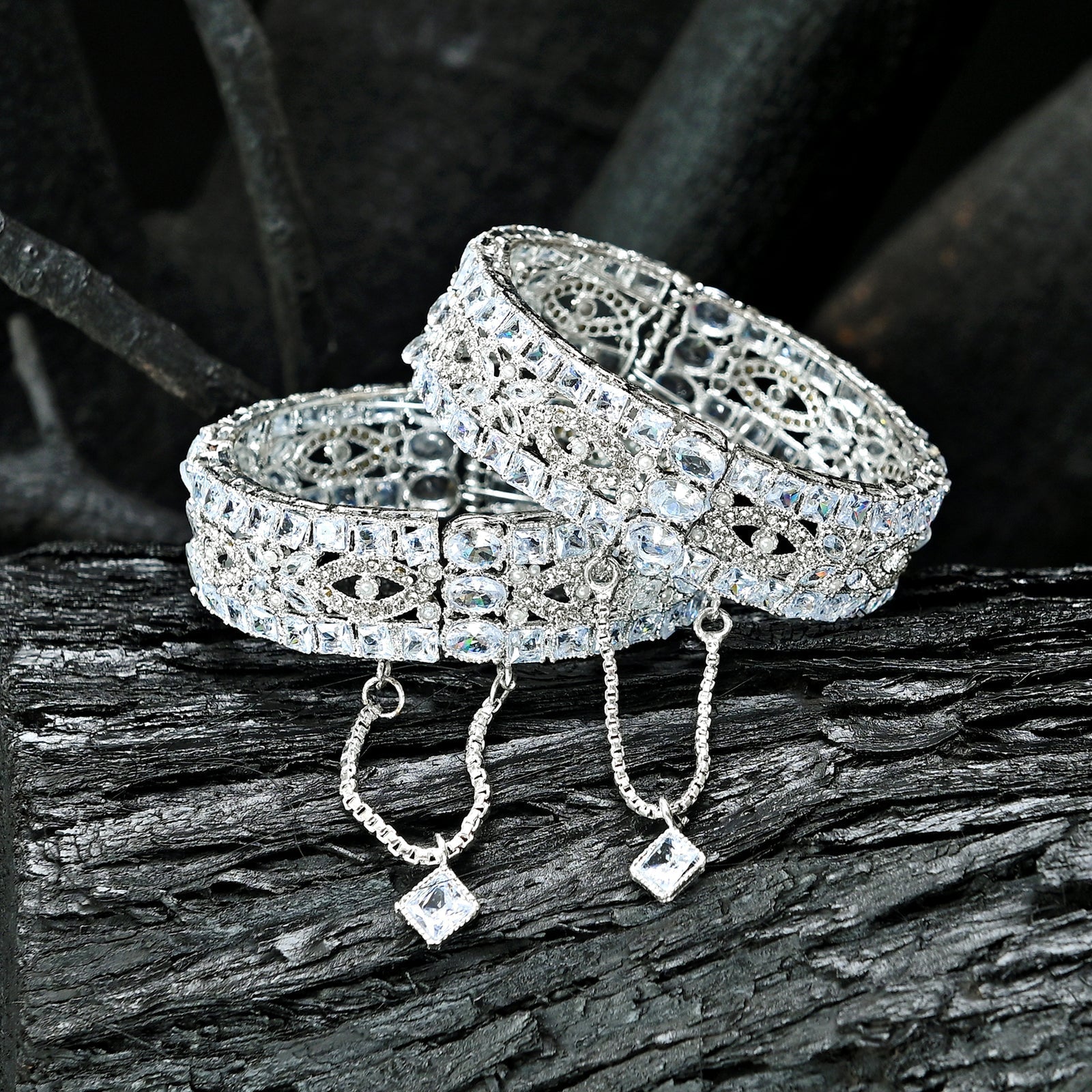 Elevate your style with our Crystal Cascade KB Bangles. These exquisite bangles feature a mesmerizing cascade of sparkling crystals, meticulously arranged to create a breathtaking spectacle. Adorned with shimmering cubic zirconia, they exude a sense of luxury and sophistication. Perfect for adding a touch of glamour to any outfit, these bangles are a must-have accessory for the modern woman.