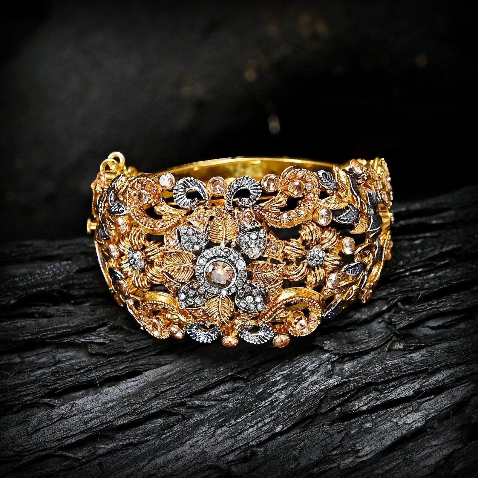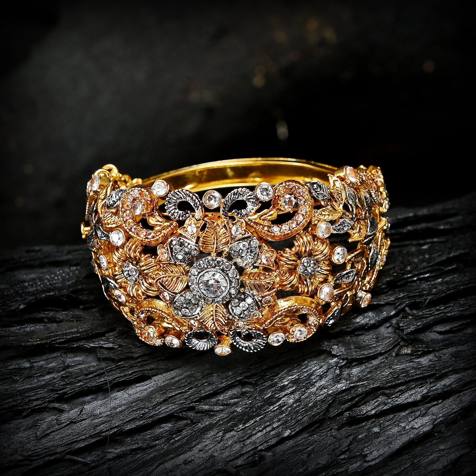 Elegance meets innovation with our Openable Flower Bangles (BN-13). Crafted with meticulous attention to detail, these bangles are designed to capture the essence of nature's beauty while offering practicality and style. Each bangle features a stunning floral motif, delicately etched to perfection. The openable design adds versatility, allowing for effortless wearing and removal.