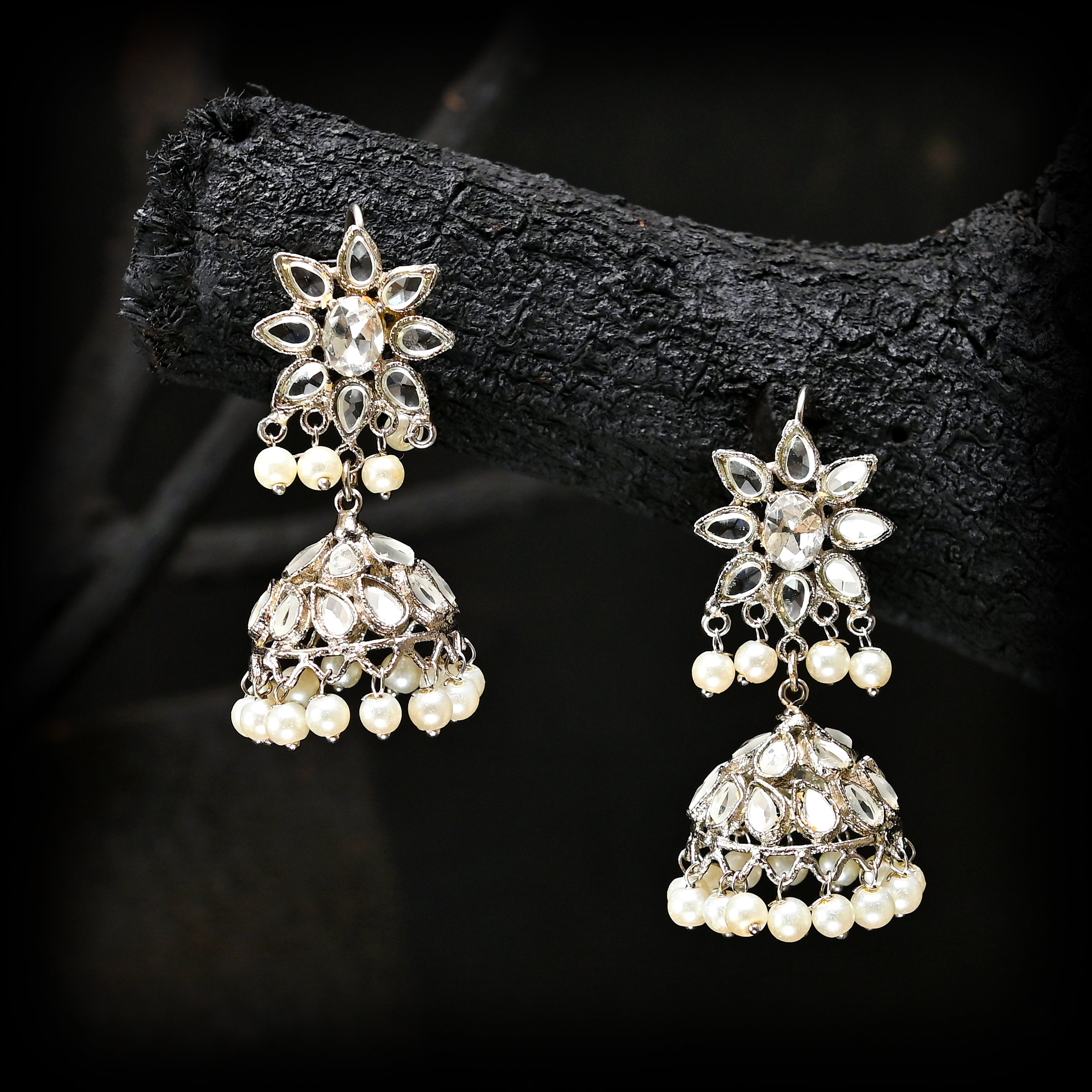 Star Jhumke is a traditional Indian earring, part of the Jhumka style. It features a distinctive bell-shaped design with star embellishments, typically crafted from materials like gold or silver. These earrings come in various sizes, adorned with gemstones or beads, and are suitable for diverse occasions, reflecting cultural significance and skilled craftsmanship