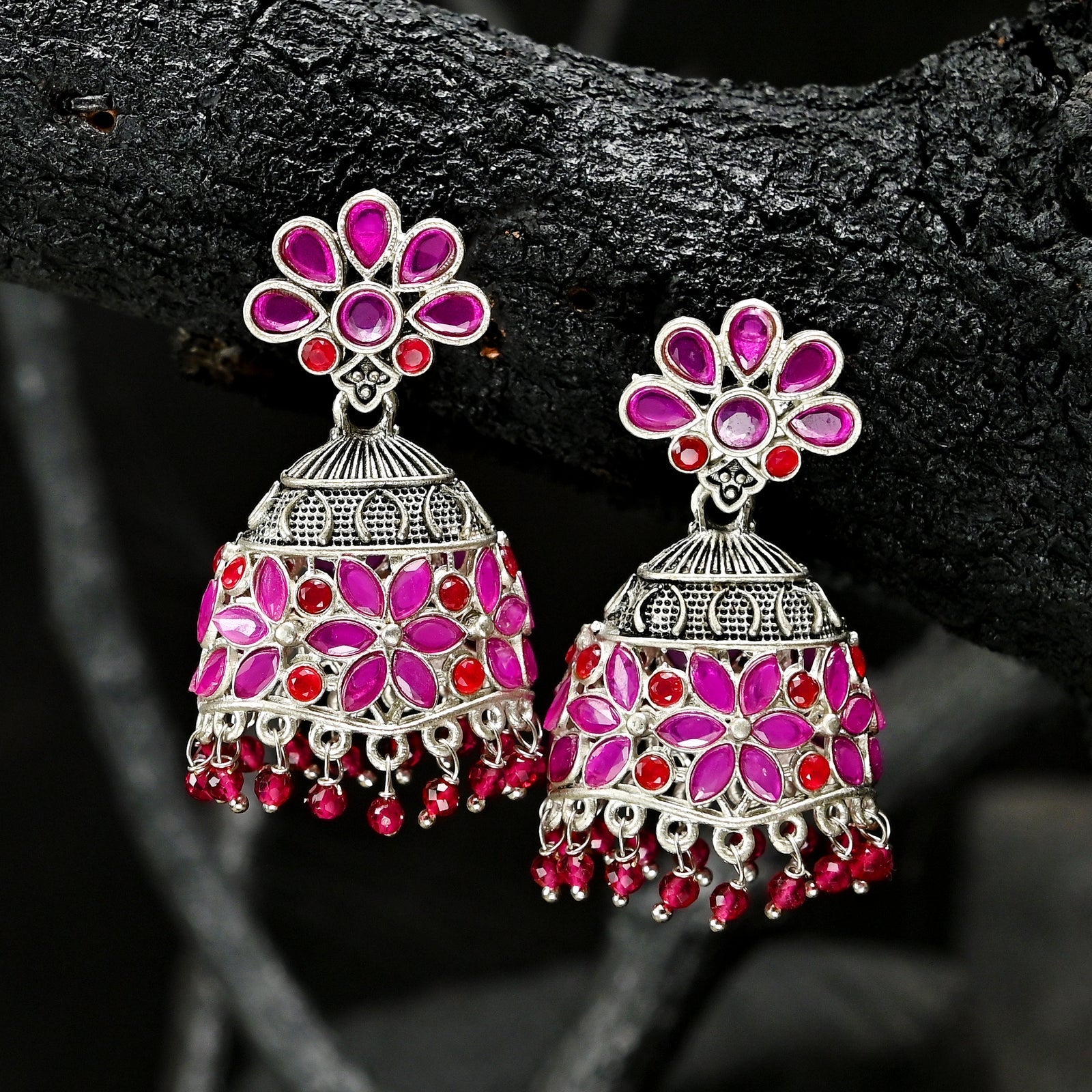 Indulge in the timeless charm of our Oxidised Plated Jhumki - JK-21. These enchanting jhumki earrings feature an exquisite oxidized finish, exuding a rustic allure that effortlessly complements both traditional and contemporary ensembles. Adorned with intricate detailing and a graceful silhouette, these jhumkis are the epitome of understated elegance, adding a touch of sophistication to any look with their captivating design.