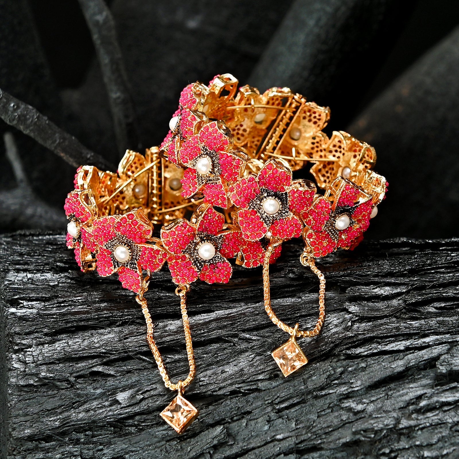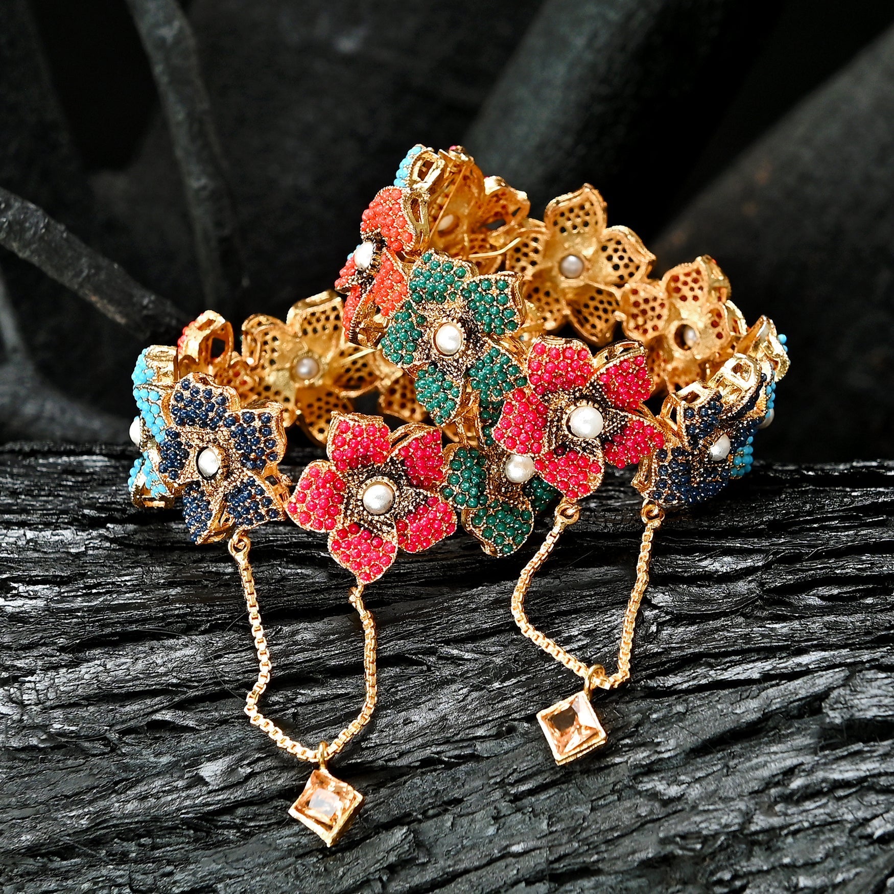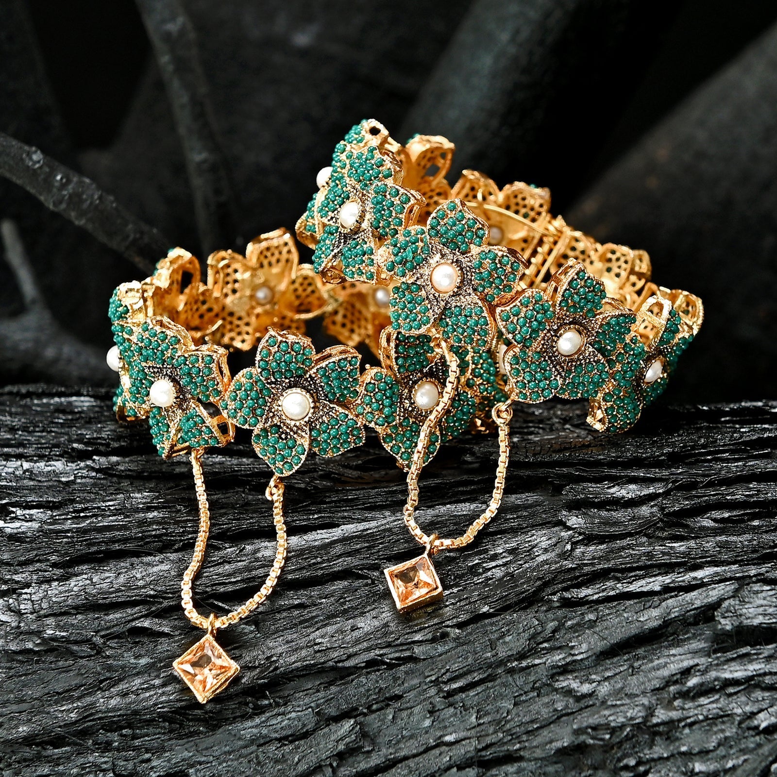 Pearl Blossom Bangles - BN-27 are a delicate and elegant ensemble that captures the essence of nature's beauty. Adorned with lustrous pearls and intricately crafted floral motifs, these bangles exude timeless charm and sophistication. Designed to grace the wrist with a touch of opulence, they are a perfect blend of classic and contemporary style.