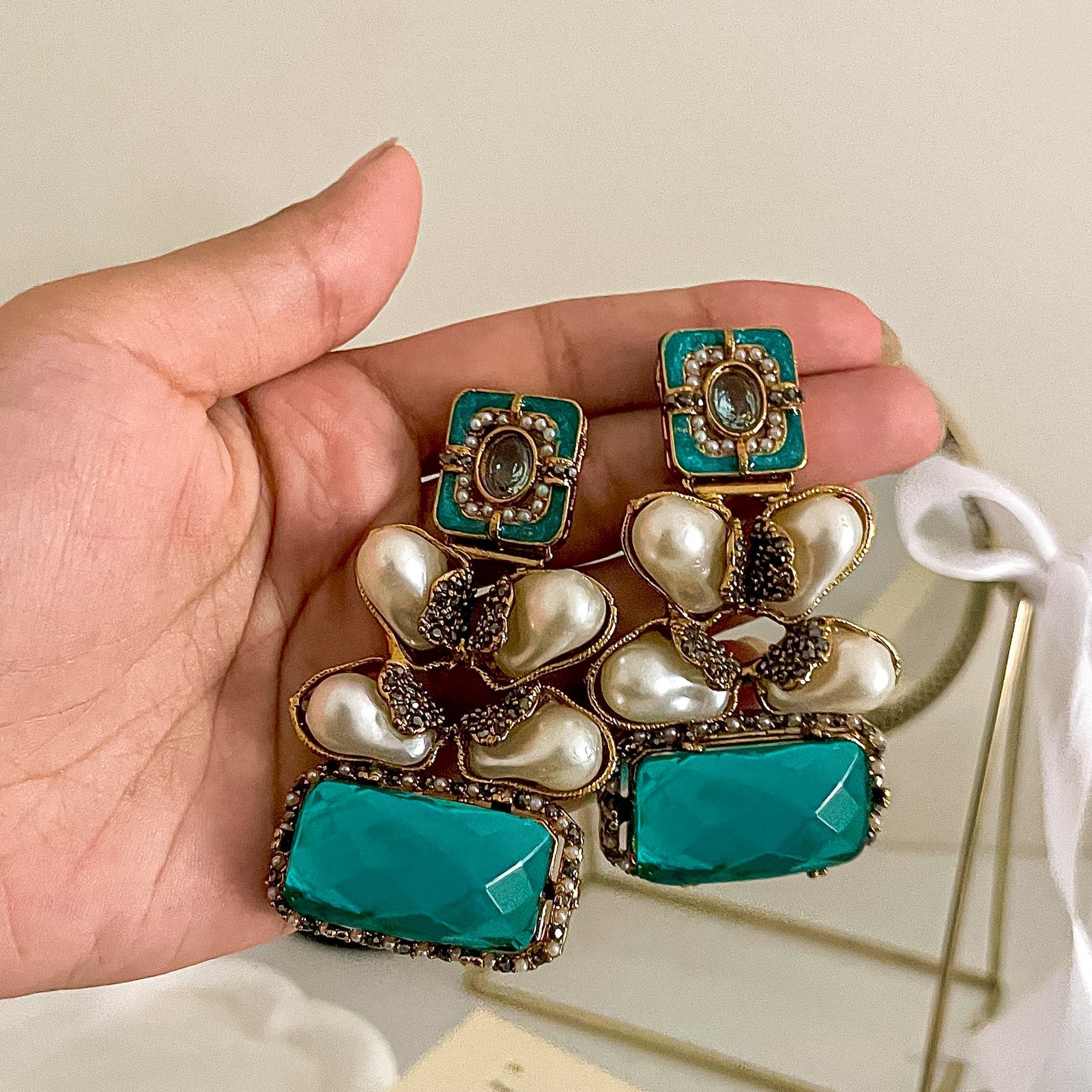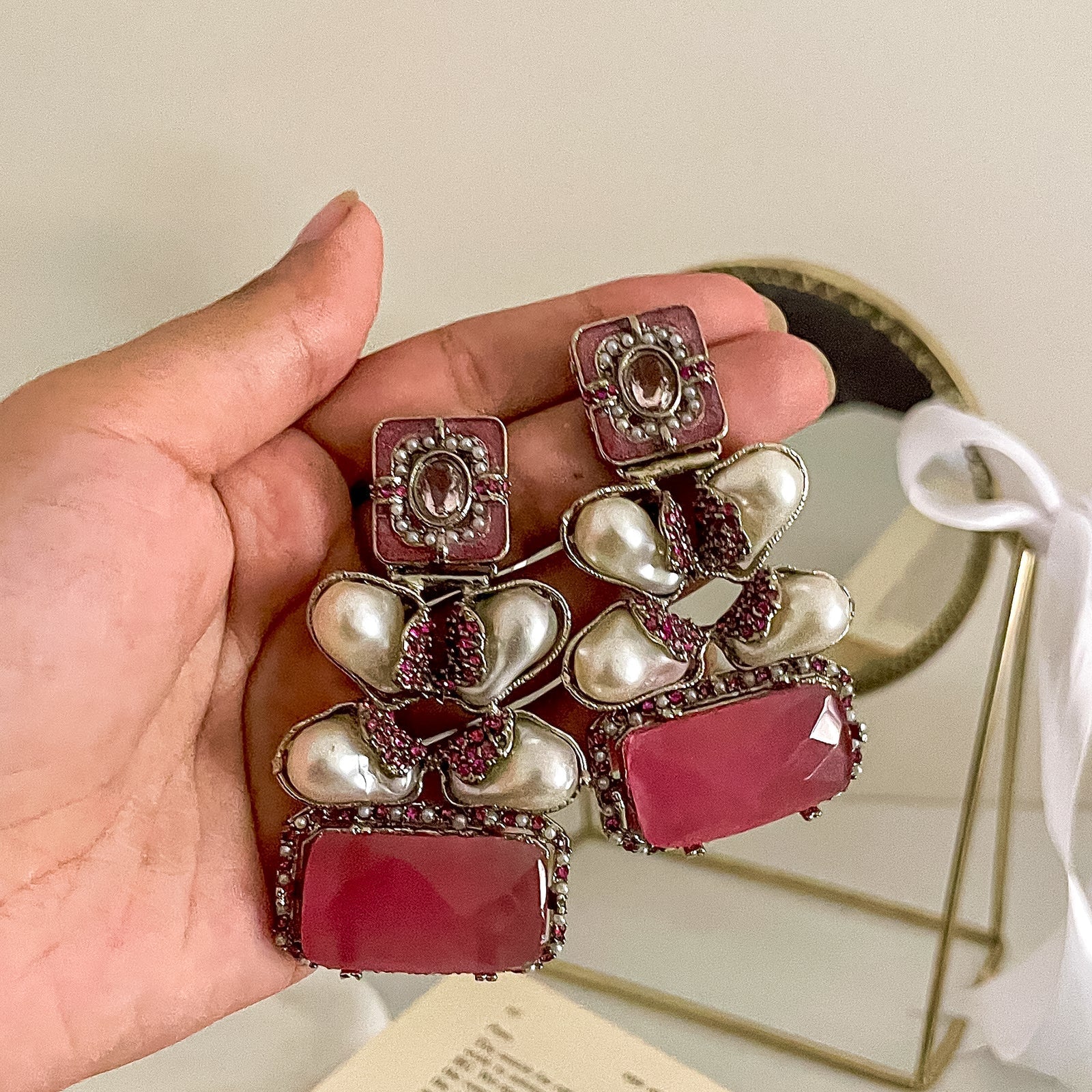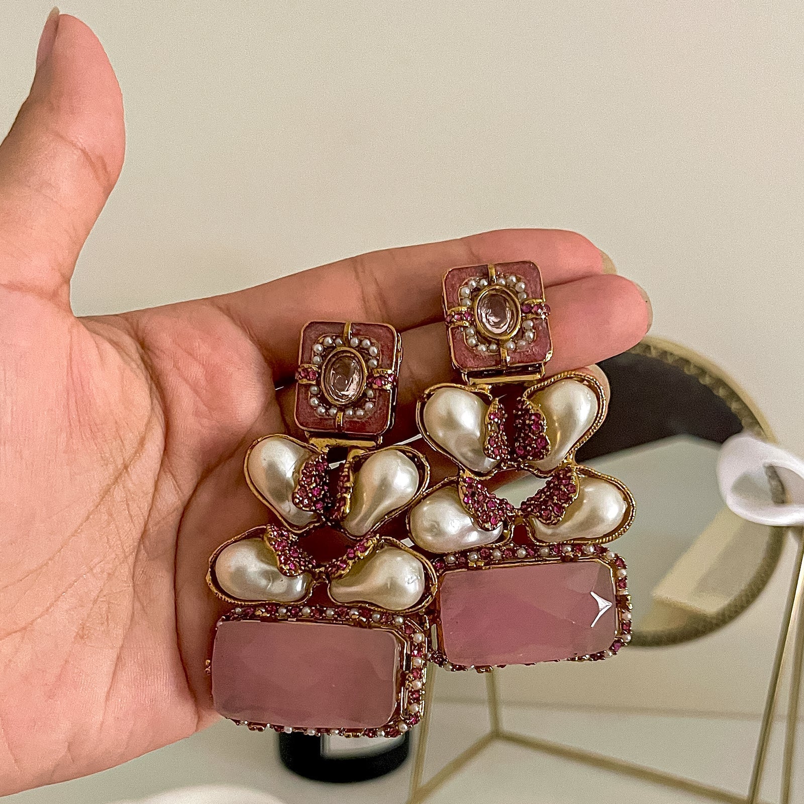 Unique Design: The distinctive design of the earrings makes them a standout piece.