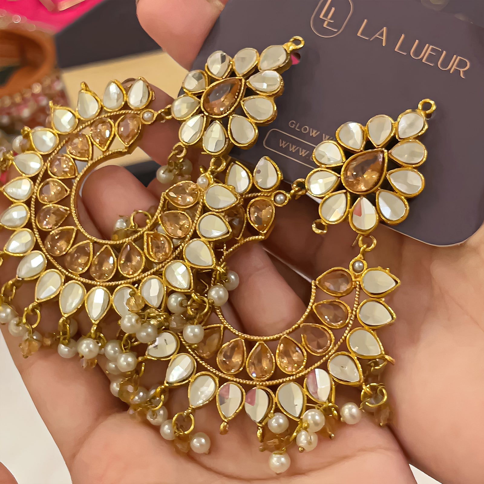 Step into the world of royalty with our Rajwadi Kundan Earrings - (ER-50). These exquisite earrings capture the essence of regal elegance with their intricate Kundan craftsmanship and opulent design. Inspired by the grandeur of Rajasthani royalty, each earring is adorned with shimmering Kundan stones, exuding a timeless allure that is perfect for weddings, festivals, and special occasions. Elevate your ensemble with the majestic charm of our Rajwadi Kundan Earrings - (ER-50).
